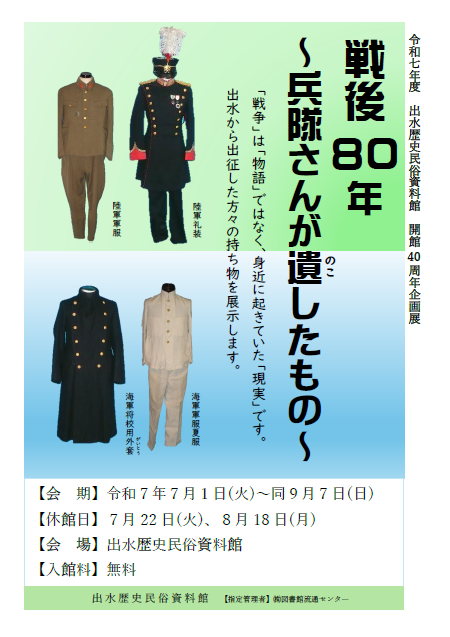 鹿児島県出水市にある出水市歴史民俗資料館の公式ホームページです。