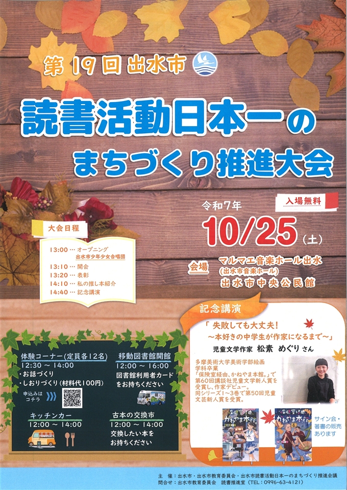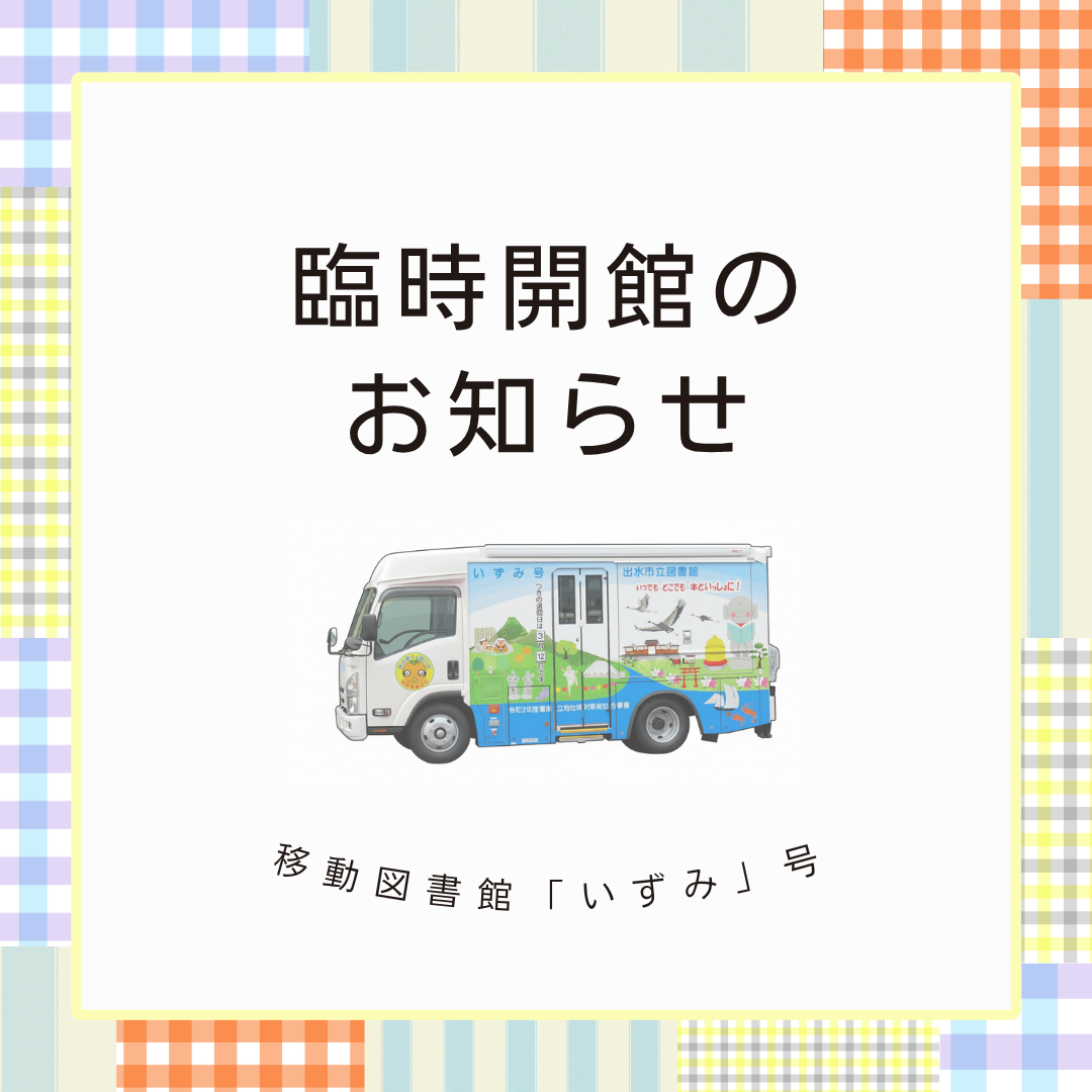 10月25日(土)の第19回出水市読書活動日本一のまちづくり推進大会にて、移動図書館を臨時開館いたします。