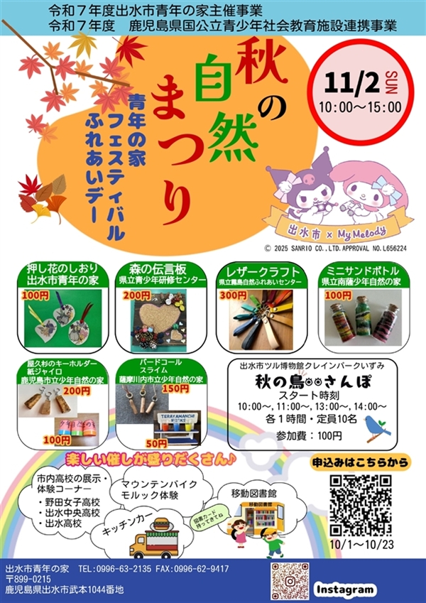 青年の家で開催される、「秋の自然まつり 青年の家フェスティバルふれあいデー」に移動図書館を開館します。