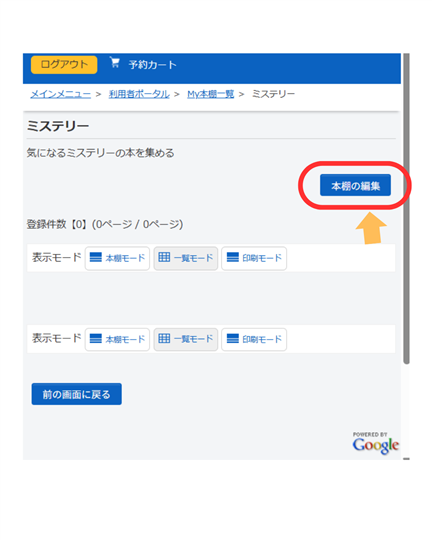 ①本棚の名称・説明を変更したり、削除したいときは、対象の本棚を選択してクリックします。