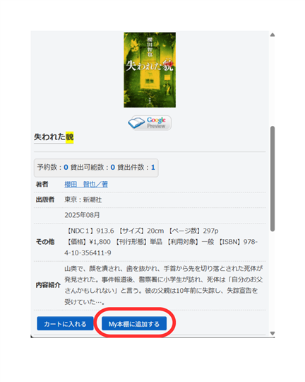 ①My本棚に追加したい資料の詳細画面で 【My本棚に追加する】をクリックします。