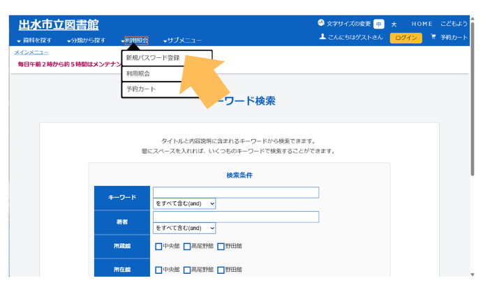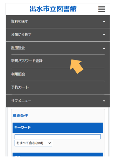 下の画面のとおり、「新規パスワード登録」を選択してください。