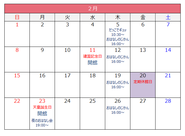 開館カレンダー