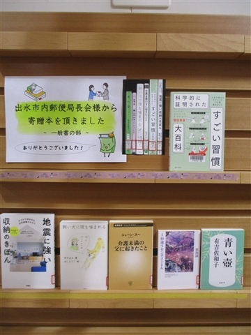 この度、出水市内郵便局長会様より、本を寄贈していただきました。