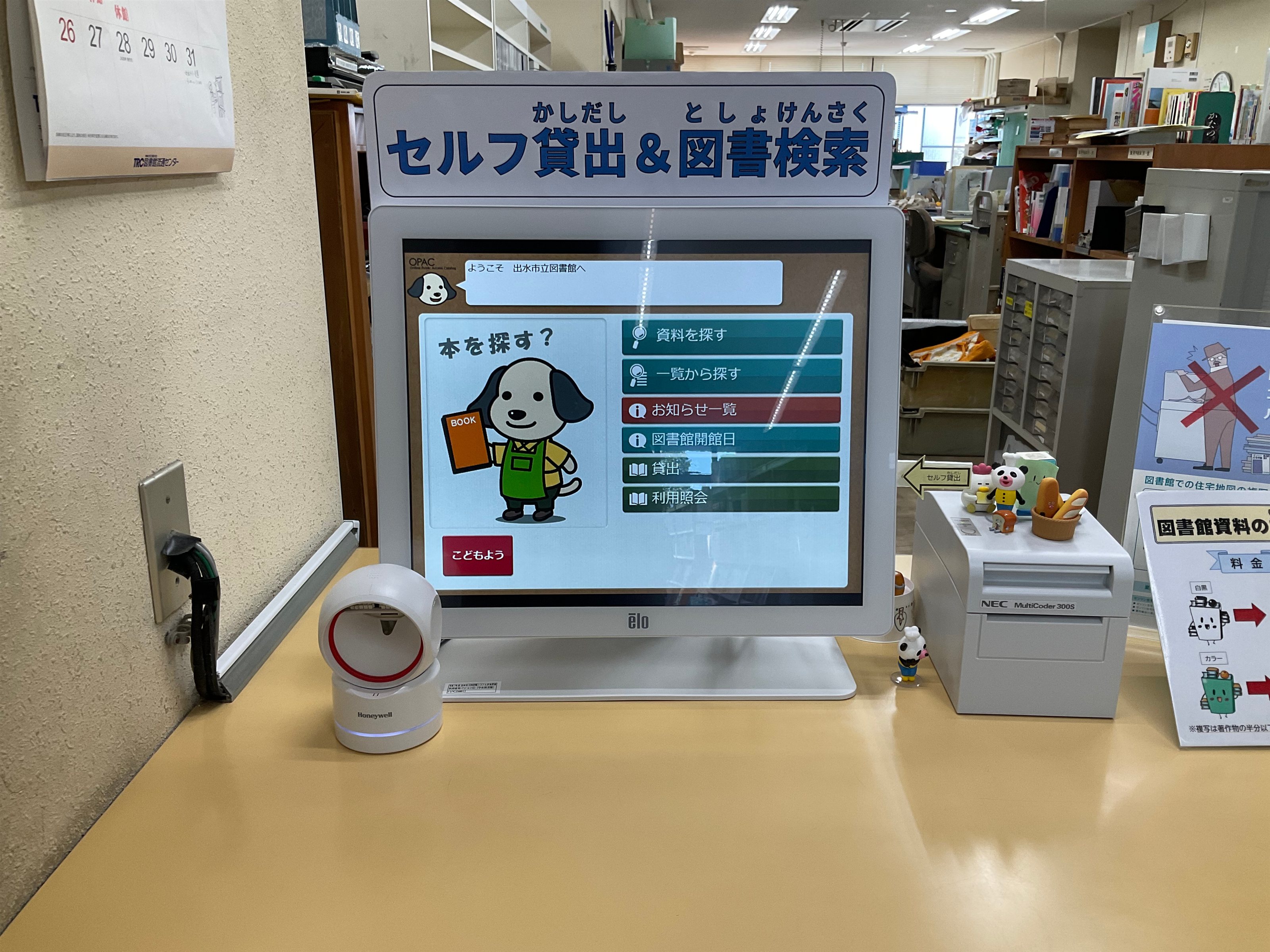 出水市立図書館では、セルフ貸出機が利用できます。利用者自身で図書館利用者カードと本のバーコードをピッと読み込んで、貸出ができます。セルフ貸出機は、各図書館に1台ずつ設置あります。ぜひ、ご利用ください。