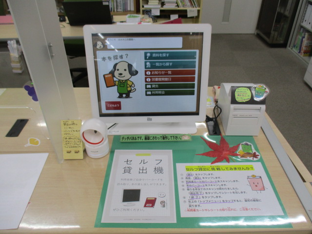 貸出・返却等カウンターでの混雑緩和のため、セルフ貸出機をご利用ください。